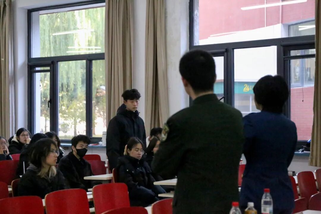 宣讲会临近尾声,进入了最受关注的互动答疑环节。面对同学们关于体检标准、未来发展等方面的踊跃提问,二位优秀退伍大学生耐心细致地逐一解答,现场气氛达到高潮。